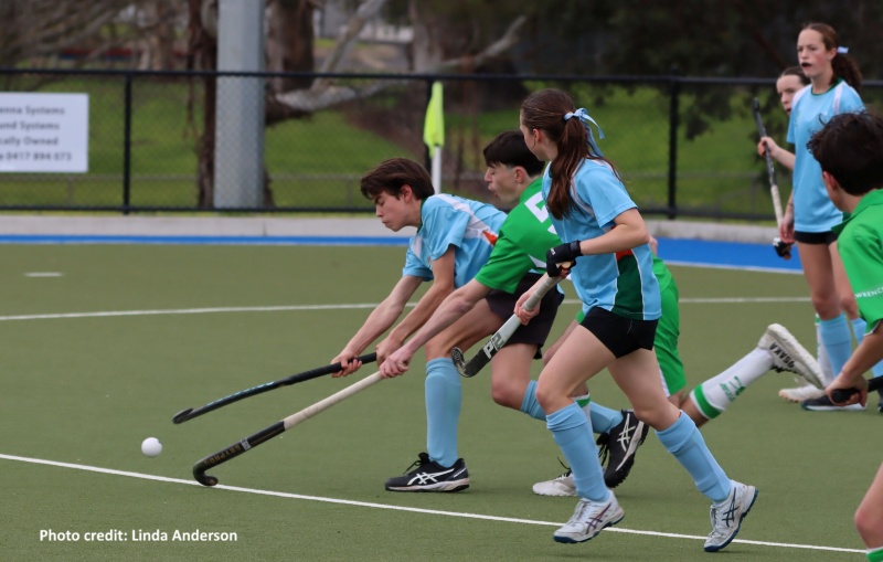 In attack, Greenbottles built momentum through excellent forward runs and strong combinations. The strikers — Madeleine, Winnie, Alice and Eliza — pushed hard all game, finding space and linking up beautifully to keep Tatiara’s defence busy. Their persistence set up critical opportunities, and when Greenbottles earned short corners in the third quarter, they made them count; Toby stepped up, scoring twice with sharp finishes to give his team a crucial lead before half time.